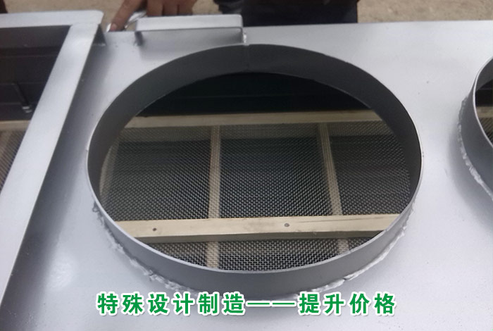 大漢機械專業研發生產的降溫直線振動篩這對高溫特性物料設計研發,在進料口底部或箱體下側端增加了風機降溫冷卻系統,該裝置可有效攔截大顆粒并緩沖物料對篩網的沖擊,延長篩網使用壽命(該裝置針對部分物料,不需要可去除)。物料在進入設備時,位于進料口底部或箱體下側端的風機降溫冷卻系統對其進行降溫作業。這樣的特殊設計制造,也在一定程度上提升了價格。