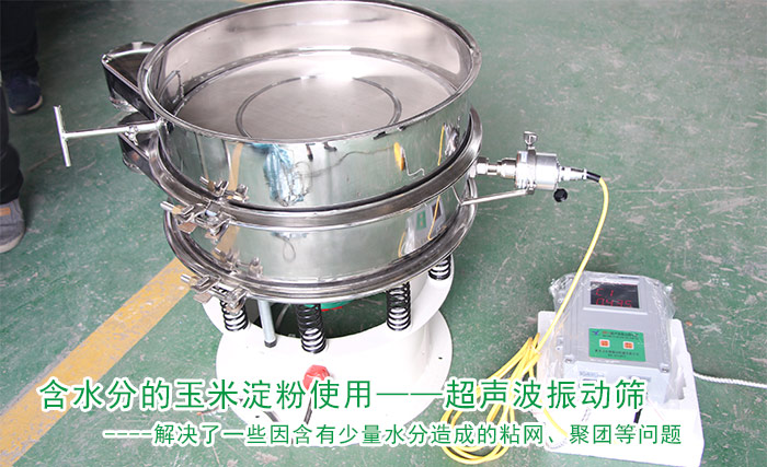 這款振動篩加裝了超聲波系統,有效解決了一些因含有少量水分造成的粘網、聚團等問題。下面小編給您說說使用超聲波振動篩來篩分玉米淀粉“好”在哪里?