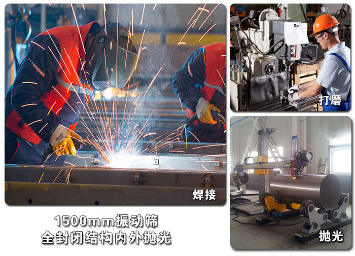 1500mm振動篩整機采用優質不銹鋼,內外全拋光無毛刺,焊接之處也經過打磨而成,,符合食品行業的衛生要求,全封閉的結構也保證了衛生要求,保護環境還不會對員工的身體造成危害。